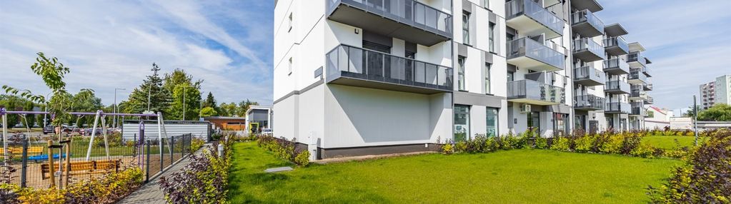 teren wokół budynku zagospodarowany - plac zabaw i strefa rekreacyjna.