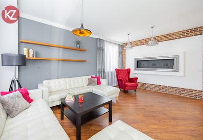 Wnętrze tego mieszkania zachwyca przestronnością i funkcjonalnością. Salon wykończony w eleganckim stylu z użyciem cegły, tworzy idealne miejsce na wspólne spędzanie czasu z rodziną i przyjaciółmi.