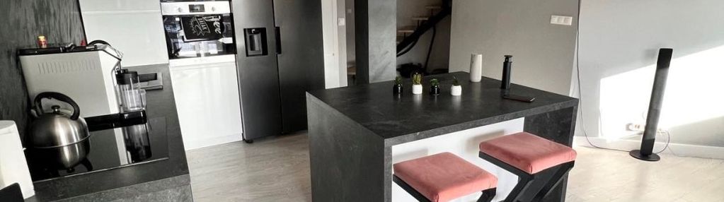 - Kuchnia z wyspą i płytą z wbudowanym pochłaniaczem
