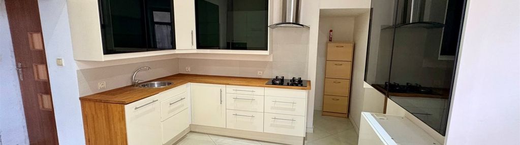 Wyremontowana kuchnia wykonana na wymiar wraz ze sprzętami AGD w zabudowie.