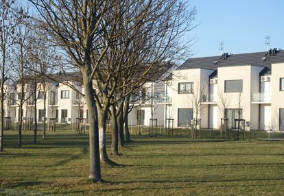 Dużo zieleni oraz młodych drzew i nasadzeń, ścieżki spacerowe dla mieszkańców - jest też plac zabaw dla dzieci.