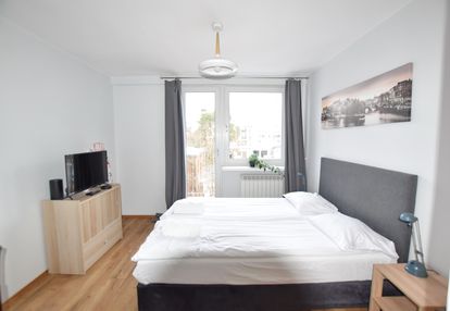 Pokój z balkonem, aneks kuchenny w przedpokoju i łazienka. Wnętrze świetnie zaprojekowane , wykończone z materiałów dobrej jakości.