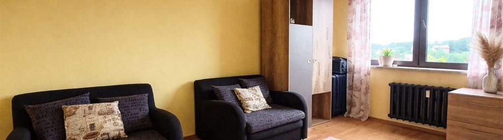 Mieszkanie składa się z salonu z otwartą kuchnią , sypialni (ładny widok na zielony skwer, drzewa), łazienki wraz z wc oraz przedpokoju.