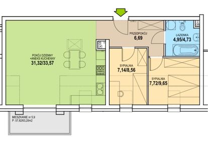 Mieszkanie na sprzedaż 3 pokoje Zielona Góra, 58,58 m2, 4 piętro