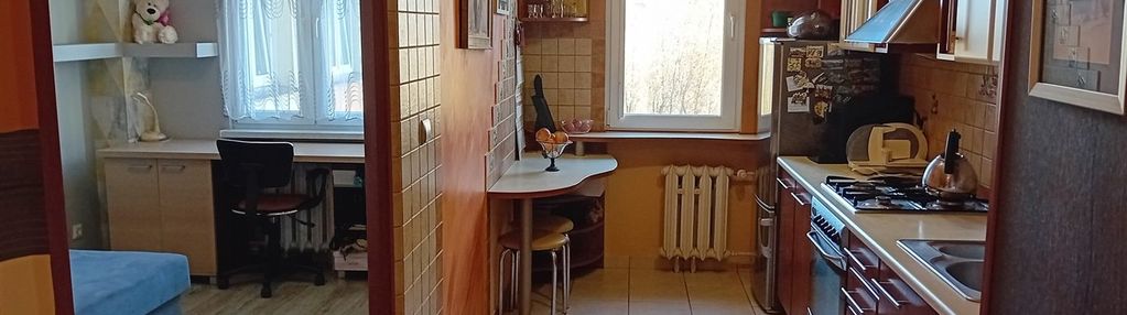 Mieszkanie umeblowane : w pokoju dziennym szafa zabudowana, komplet wypoczynkowy z ławą, wynajmowane będzie bez odbiornika TV. W sypialni kanapa oraz biurko - blat do pracy z krzesłem. W kuchni zabudowa kuchenna, lodówko- zamrażarka, piec gazowy z piekarnikiem elektrycznym. W narożniku stolik i dwa taborety. W łazience wanna, umywalka z szafką, pralka oraz WC. Na podłogach panele oraz płytki, na ścianach gładzie gipsowe oraz glazura w kuchni i łazience.