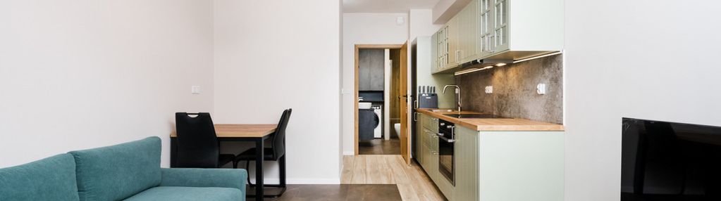 - W pełni umeblowane i wyposażone (zabudowa kuchenna, AGD, pralka, TV, szafa w zabudowie)