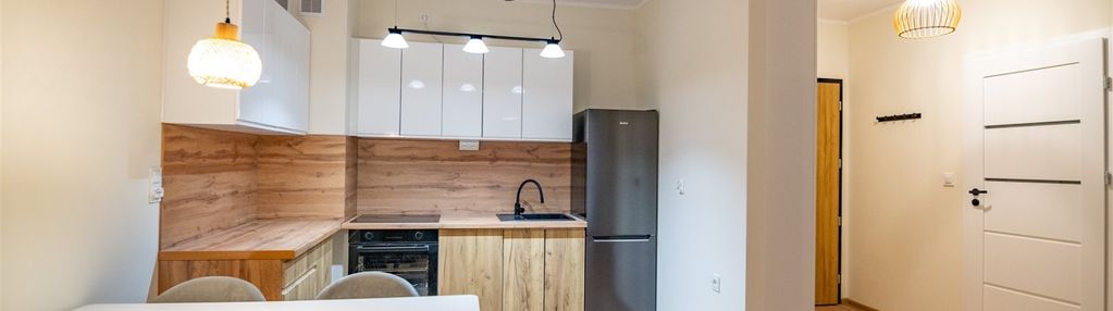 Mieszkanie umeblowane i wyposażone w sprzęt AGD (w pełni wyposażona kuchnia oraz łazienka). Dodatkowo szafy w sypialni i przedpokoju.