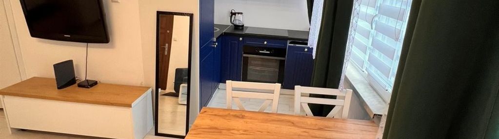 Salon połączony z nowoczesną kuchnią. Drugi pokój przeznaczony na osobną sypianie. Umeblowanie mieszkania w nowy sprzęt AGD oraz meble wykonane na wymiar..