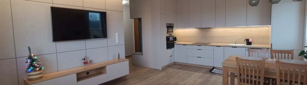Salon z aneksem kuchennym: 24 m² — przestrzeń dzienna idealna do relaksu i spotkań, w pełni wyposażona kuchnia z praktycznym ciągiem roboczym.