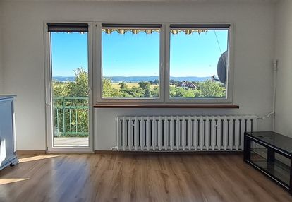 przestronny salon z wyjściem na duży balkon, z którego rozpościera się zachwycający widok na góry - idealne miejsce do relaksu i wypoczynku na świeżym powietrzu,