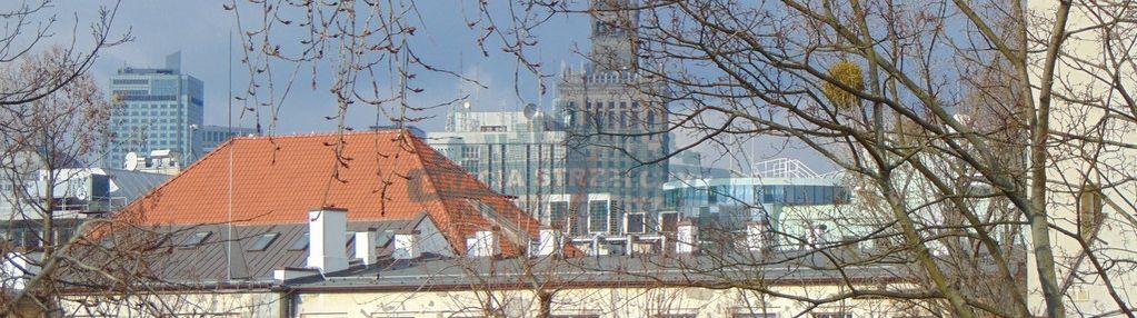 Duży pokój z balkonem, widok na ciche podwórko i wysoką zabudowę Placu Defilad.