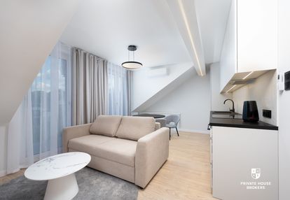 The apartment is located on the first floor (of two) of a building built in 2025. The apartment comprises a room with a kitchenette, a bathroom, and a hallway. The living room opens onto a spacious balcony. The apartment was designed by an interior designer, giving the apartment a unique character. The apartment is fully equipped with all necessary appliances and is ready to move in. A ground-level parking space is also available for rent.
