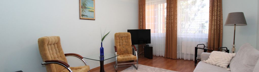 Mieszkanie w pełni umeblowane i wyposażone w sprzęt AGD (lodówka, kuchenka, piekarnik, pralka). Pomieszczenia są czyste, zadbane i urządzone w neutralnym stylu.